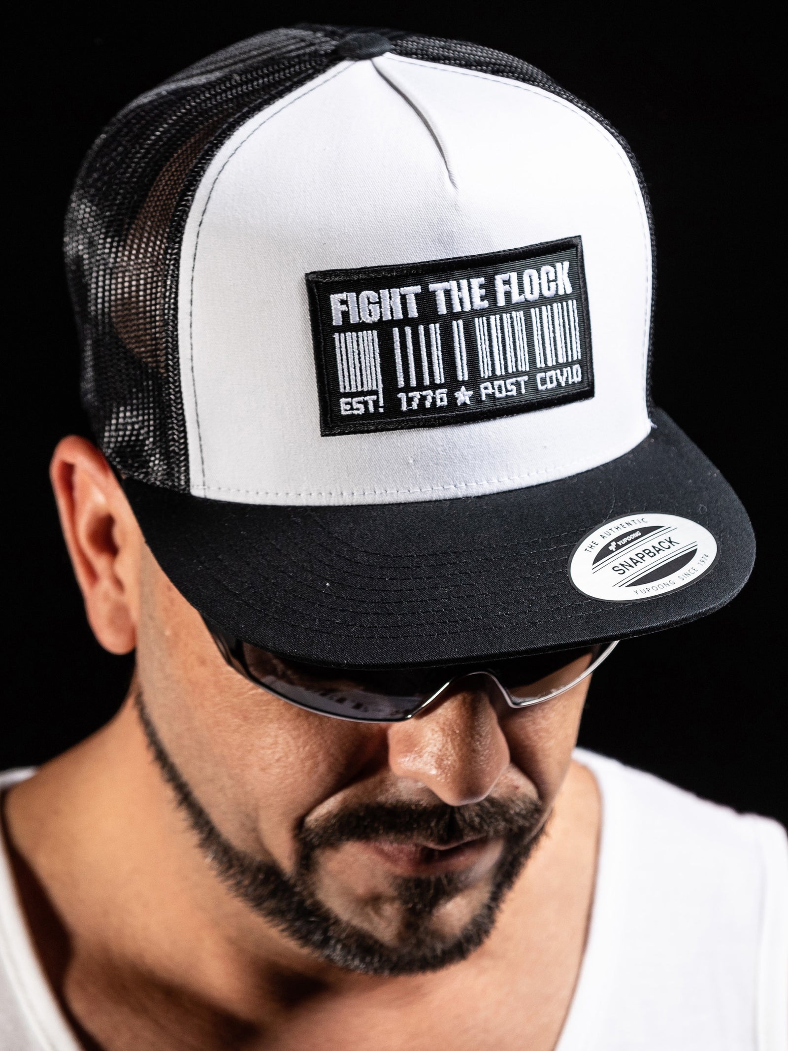 Barcode Trucker Snapback Hat | White / Black