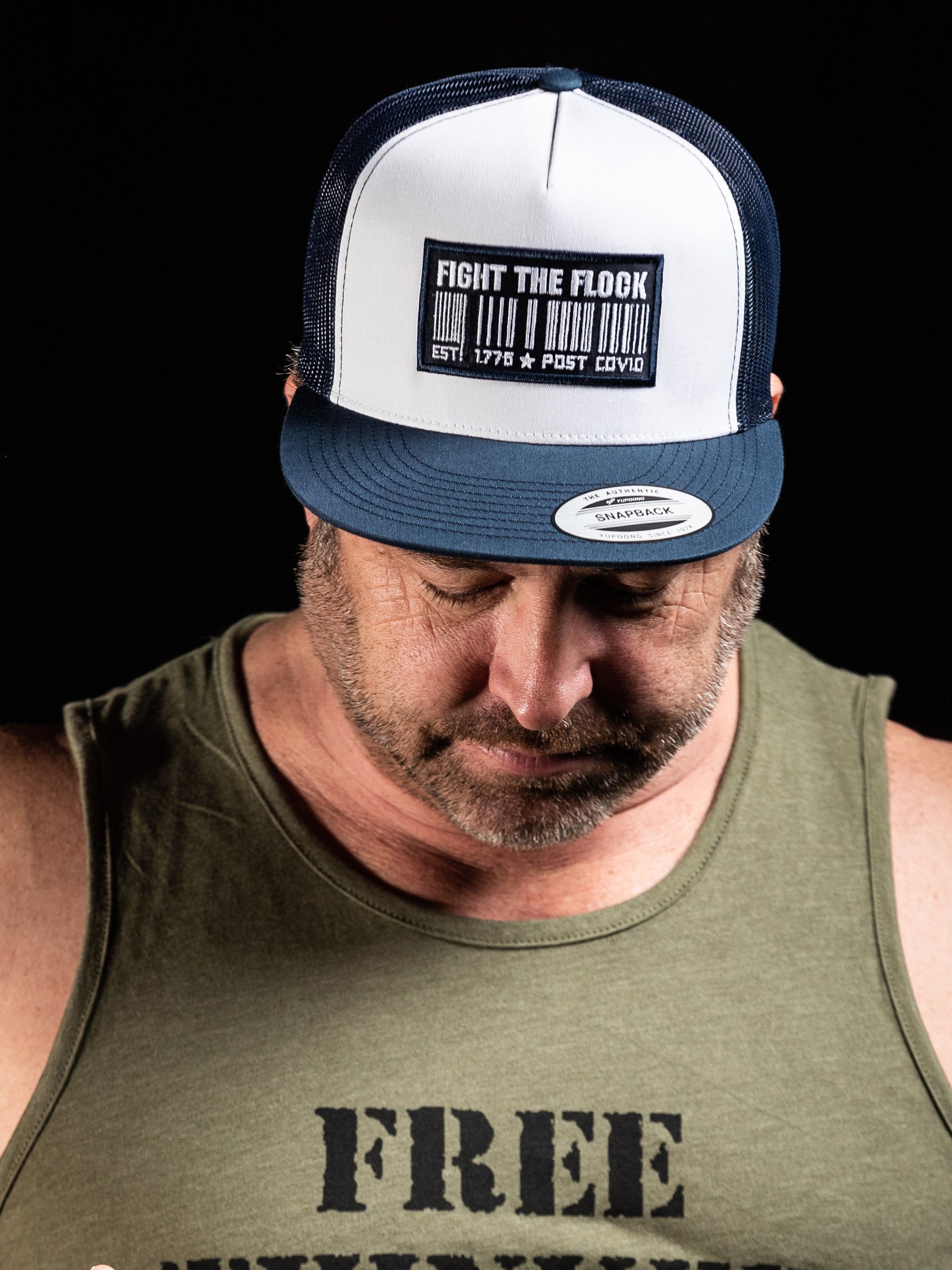 Barcode Trucker Snapback Hat | White / Navy